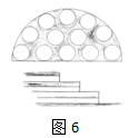 根据隧道专家的提示,大跨度也就是半圆隧道,放顶不能一次到位,要分多次并要有支撑顶部,根据要求,首先可用本发明中的首级多台全自动行星子母钻头盾构机,将所掘隧道面挖掘成蜂窝一样参见图6),钻成多孔,用蜂窝壁作支撑,再按照支撑理论用现有挖机逐步清除蜂窝壁,达到慢慢放顶的要求来保证隧道安全