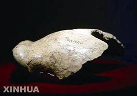 这件“北京人”头盖骨化石于1966年被发掘,是目前保存在国内的唯一一件真品,与失踪的“北京人”头盖骨化石属于同一时期 新华社发