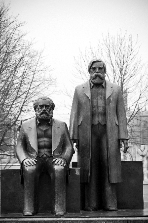 在德国柏林马克思-恩格斯广场(Marx- Engels-Forum)上的雕塑。