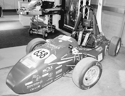图为Materialise公司与鲁汶国际工程学院合作制造的赛车,该赛车外壳是用猛犸光固化3D打印机一次成型打印的,轴承是用钛金属3D打印的。记者 张 杰摄