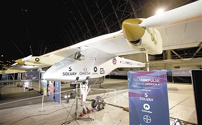 美国加州莫菲特机场,世界首架太阳能动力飞机向媒体展示。今年五月,进行首次跨国飞行,这架飞机预计将在2015年进行世界飞行。