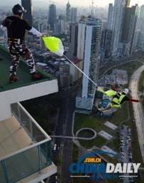 发明家设计出紧急降落伞 可供写字楼职员逃生