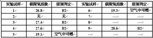 在试样宽面上距点火端50mm出划线;将试样垂直地装在试样夹上,试样上端至筒顶距离不小于100mm;调节流量阀门,使流入燃烧筒的氧、氮混合气体达到要求的氧浓度,并保持燃烧筒中气体流动速率为(4±1)cm3/s;用气体清洗燃烧筒,然后用点火器点燃试样顶部,待全部点燃后,立即开始计时,此实验重复进行3次。