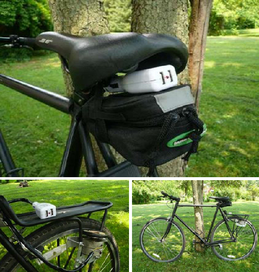 在USB设备随处可见的今天,自行车自然也得与时俱进。日前就有国外DIY能人动手制作了这款自行车USB充电器。类似于我们经常看到的自行车车灯的原理,通过在后轮上安装的一个发电电机和一个有两个USB接口,这个略显古老的自行车发电装置就又焕发出了现代化的生机。在长途骑行中若是有了这个充电器就再也不用担心手机、MP3、导航仪这些设备的电池了。当然如果再为其接上其他USB设备,您还能开发出更多意想不到的用途。