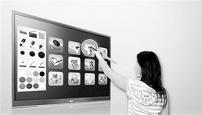 看起来就像是谁竖立了一大块白色留言板,但实际上却是LG公司的笔触技术装备等离子电视。拿好专用笔,连上一台为电视上传内容的电脑,就可以任你随笔乱画狂草,或是书写doc格式的word文档、在浏览器中“手工”写入网址、将Power Point的内容高亮划取,而更受欢迎的是,你还能玩《疯狂的小鸟》这类的小游戏。