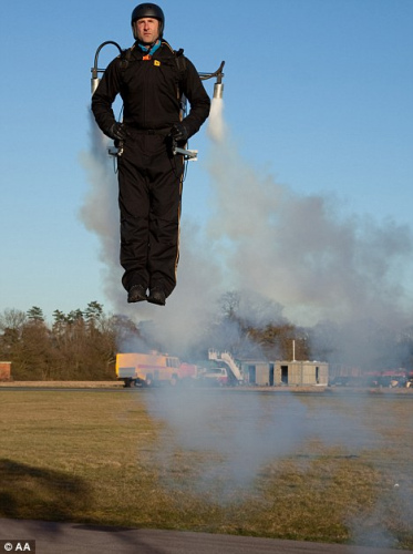 英国汽车协会“火箭人”借助喷气背包升空