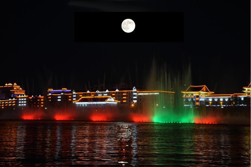 布尔哈通河上空的超级月亮(多从曝光)